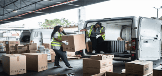 Figure 1-Professional TYMLI Errands team member delivering packages in Seattle downtown